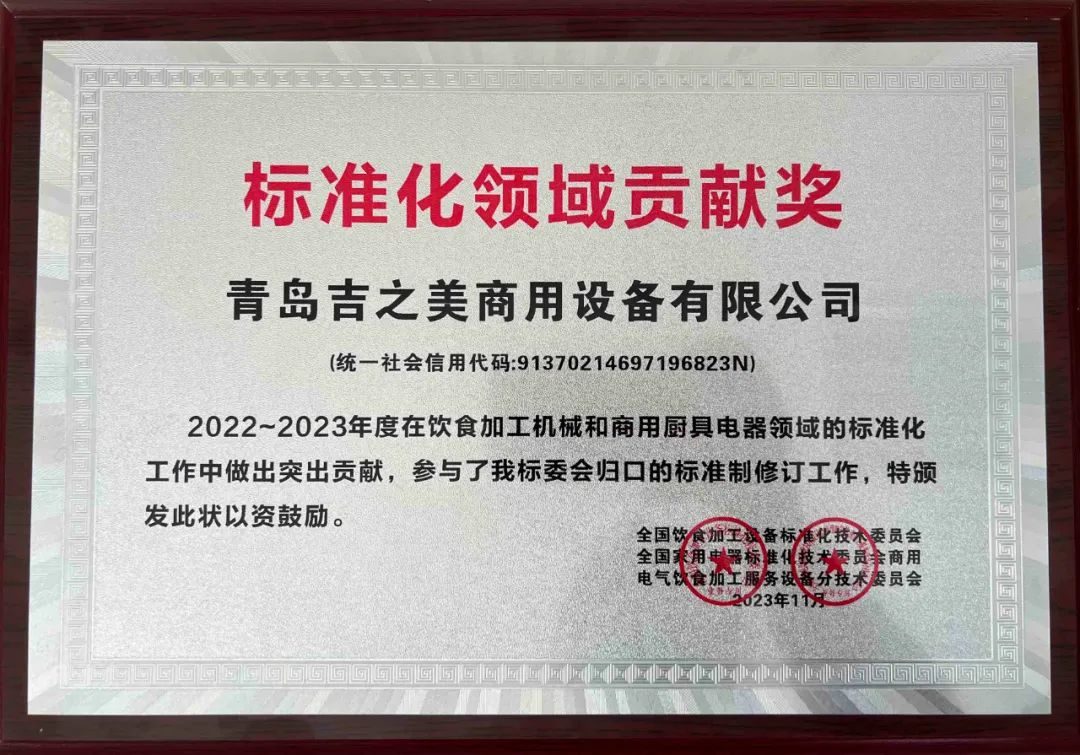 熱烈祝賀 | 青島吉之美榮獲“標準化領域貢獻獎”!